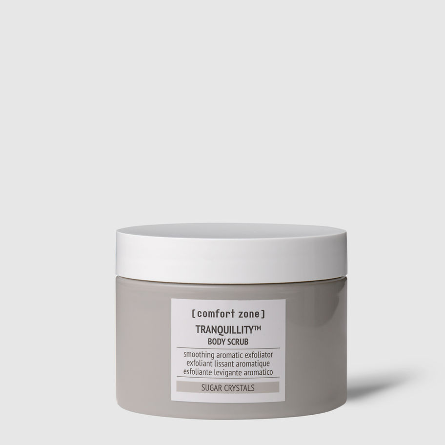 Gjenoppdag glødende, myk hud med Tranquillity™ Body Scrub, en kroppspeelingen med sukkerkrystaller. Den eksklusive formelen med amarant- og mandeloljer smelter inn i huden ved massasje, og fornyer den forsiktig. Resultatet er glatt og næringsrik hud, klar til å ta imot de neste kosmetiske behandlingene. Den ikoniske duften, laget av en blanding av appelsin- og sedertre-essensielle oljer, omfavner kroppen og fremmer en følelse av avslapning og velvære. Størrelsen og typen sukkerkrystaller gjør produktet både effektivt og skånsomt mot huden. 92,6 % ingredienser av naturlig opprinnelse.